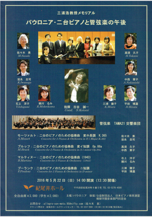 公演名:三浦浩教授メモリアル パウロニア・二台ピアノと管弦楽の午後